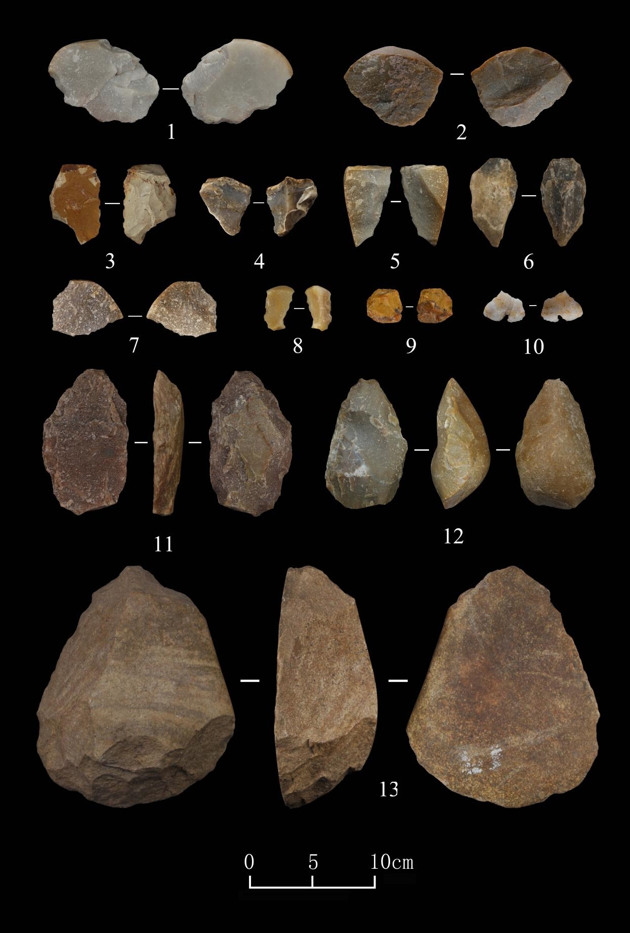 此次采集的150件石制品以石英岩为主要原料,燧石、石英、石英砂岩次之,另含少量硅质灰岩和砂岩。类型涵盖石锤、石核、石片、工具、断块及碎屑等,其中工具类包括11件刮削器、2件手镐、1件两面器和1件石锥,既有重型工具,也有中小型精细器具,均采用锤击法修理。整体技术体系属于中国北方传统的简单石核—石片工业,既表现出区域技术的一致性,也反映出一定的个体差异,器形多不规则,完整呈现了旧石器时代人类的石器制作工艺与技术特点。