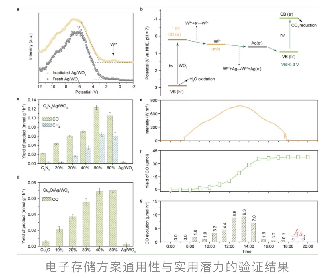 基于这一思路,团队成功研发出银修饰三氧化钨材料。实验数据显示,该材料使二氧化碳转化效率较传统方法提升了近百倍。更值得关注的是,这种“电子存储”策略并非局限于单一材料,而是具有普适性——可为多种催化材料配置“储能单元”,相当于为人工光合作用技术搭建了通用设计框架,为后续技术迭代和多场景应用奠定了基础。