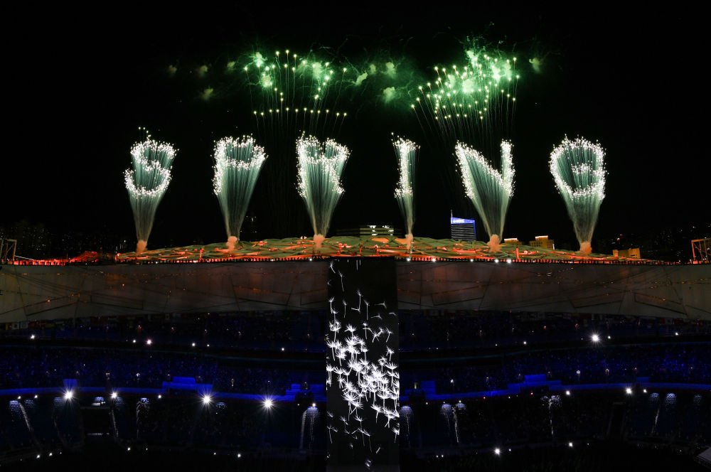 “迎客松”绽放“鸟巢”夜空