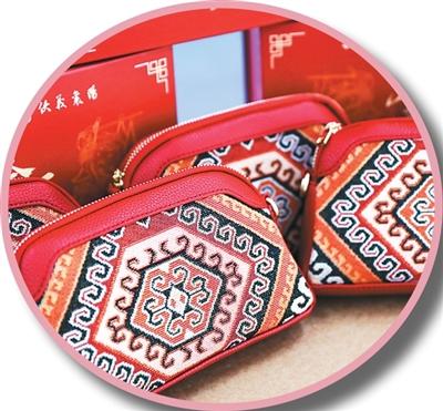 图为谭艳宾与团队为海外侨胞设计的土家织锦“西兰卡普”手包。