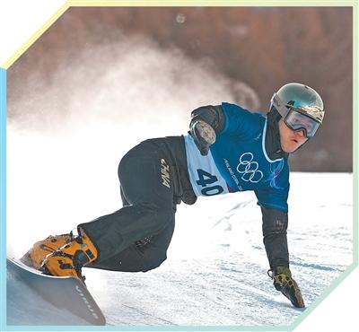中国队选手毕野在单板滑雪男子平行大回转预赛中。