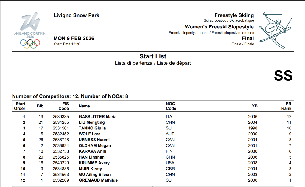 2月9日的女子坡面障碍技巧决赛