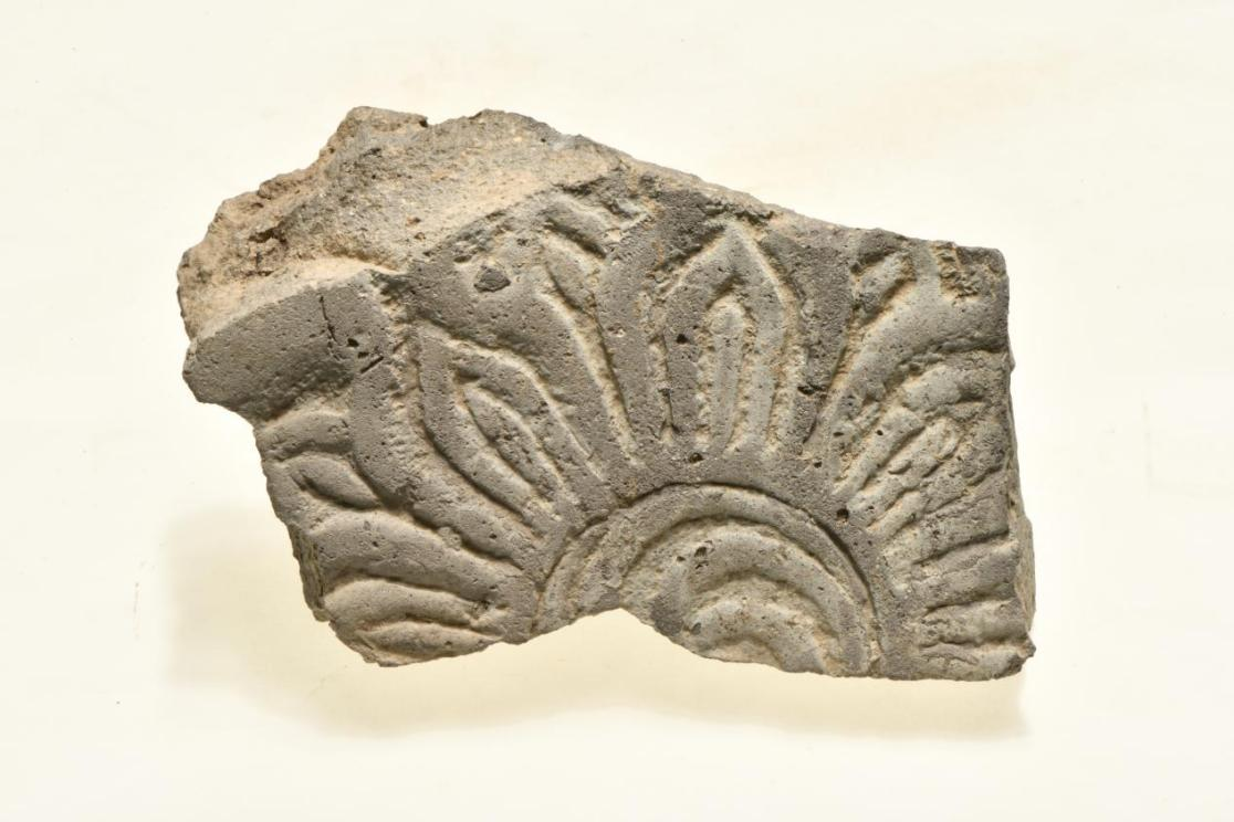 乌鲁木齐市乌拉泊古城出土莲花纹残砖。