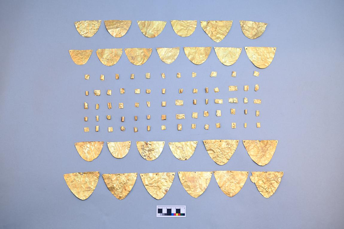 科技与考古的融合推动新疆考古学研究进入更为深广的微观层面。青河县、富蕴县及新源县出土的16件春秋战国时期金箔,采用抛光技术提升光泽,金料源于阿尔泰山或天山区域的河流沉积砂矿,表明同一考古学文化内部,所使用黄金也可能来自不同的原料网络。墩那高速公路尼勒克段出土的战国至汉代玻璃珠,涵盖了植物灰钠钙和泡碱钠钙两个化学体系,既反映人为脱色工艺的存在,也折射出早期玻璃珠生产温控能力的局限性。吐鲁番市胜金店墓地源于中原、南亚及东南亚不同技术背景的西汉玻璃珠,经当地居民的自由搭配,映照出丝绸之路上多元文化交融的场景。