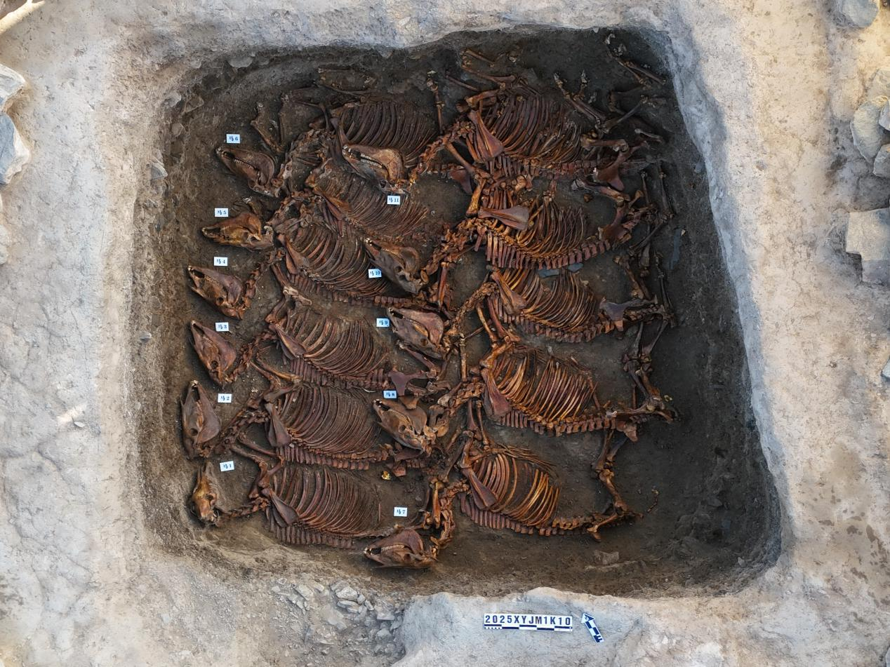 伊吾县尖甲坡墓群动物坑中的殉马现象。