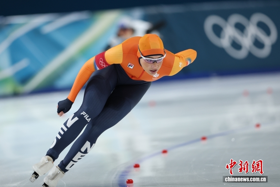 当地时间2月9日,在米兰进行的米兰冬奥会速度滑冰女子1000米决赛中,荷兰队选手尤塔·莱尔丹以1分12秒31获得冠军并创造新的奥运会纪录,另一名荷兰队选手费姆克·科克以1分12秒59获得亚军。图为尤塔·莱尔丹在比赛中。
