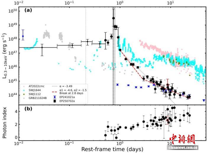 国家天文台金驰川研究员表示,超短时标、极高峰值光度以及爆发后期出现的软X射线“余辉”,共同构成一幅连贯的物理图景,也为中等质量黑洞撕裂白矮星这一“剧情”提供了强有力的支持。