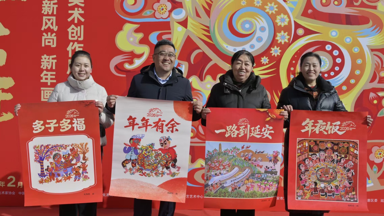 2月10日上午,由中央宣传部文明实践局、文化和旅游部公共服务司、中国美术家协会、中国民间文艺家协会联合主办的2026年“新生活·新风尚·新年画”美术创作展示活动安塞区分会场在延安市安塞区文化广场正式启动。