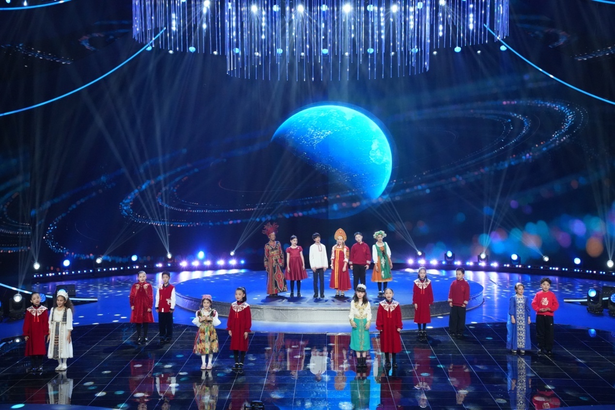 哈萨克斯坦著名歌手露西娅深情演绎《茉莉花》,驻华使馆儿童合唱团与新疆小学生同唱《我和你》,五洲唱响组合、松狮小侬侬合唱团带来跨国合唱《相亲相爱》《未来以来》;中外歌手携手演唱的《一路繁花一路歌》更将晚会气氛推向高潮,让“人类命运共同体”的理念在歌声中交融。