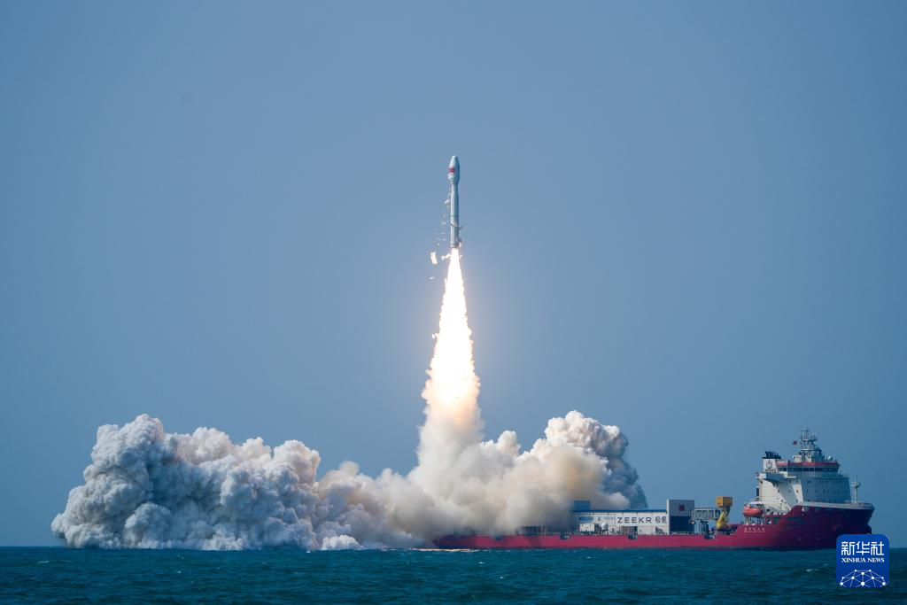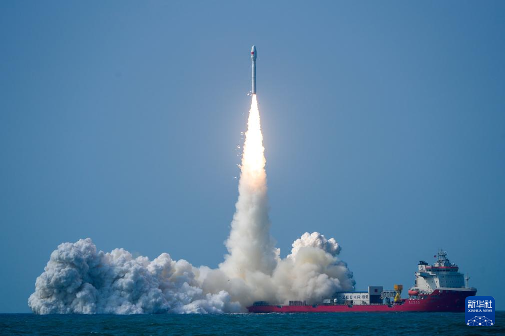 2月12日14时37分,我国太原卫星发射中心在广东阳江附近海域使用捷龙三号运载火箭,成功将巴基斯坦PRSC-EO2卫星、港中大一号卫星、电力红外卫星A星、数天宇星03-05星、空间环境监测卫星共7颗卫星发射升空,卫星顺利进入预定轨道,发射任务取得圆满成功。新华社发(郭金祺 摄)