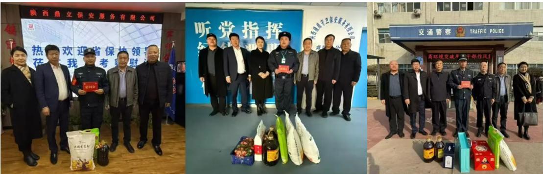 慰问中,省市公安机关保安监管部门及各市保安协会(联络员办事处)给予了大力支持及协助。省公安厅治安管理总队四支队保安科科长汪建宏,咸阳市公安局治安支队旅保大队大队长张建刚、交警支队车辆管理所民警唐博,西安市保安行业协会工会联合会主席王华、西安市保安协会办公室副主任赵华燊,咸阳市联络员办事处主任刘星、宝鸡市保安协会秘书长马琳娜,延安市保安协会会长苏建军,榆林市保安协会秘书长高东东,安康市保安协会会长李成国,汉中市保安协会会长刘忠生分别参加了慰问活动。