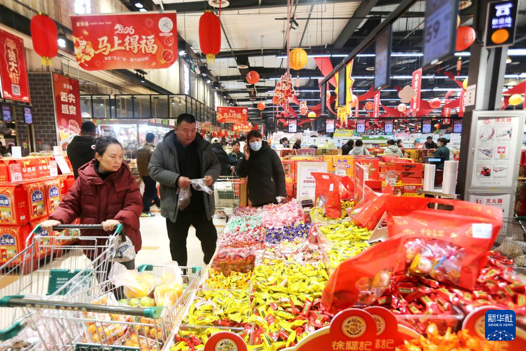 2月13日,市民在江苏省连云港市连云区一大型超市选购年货。