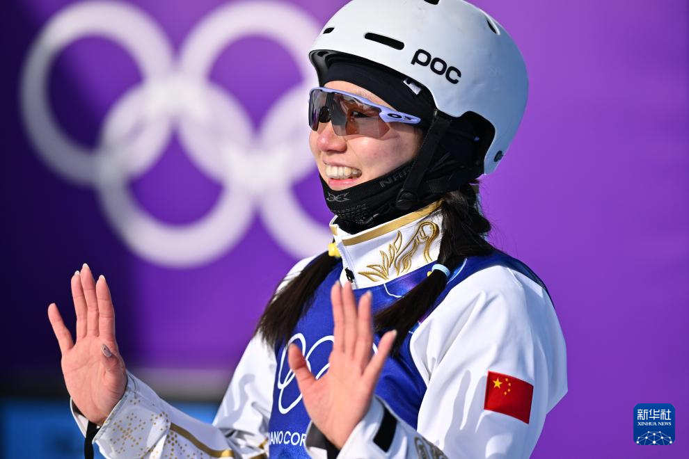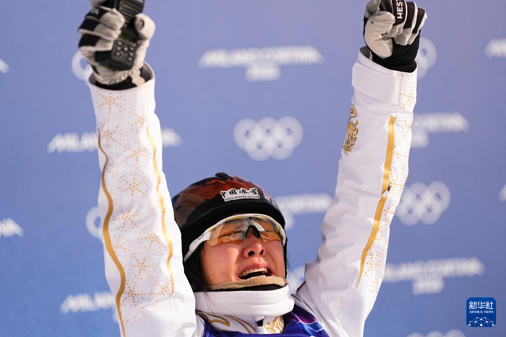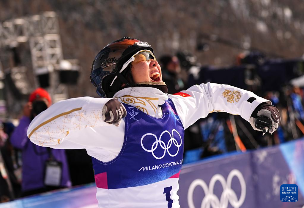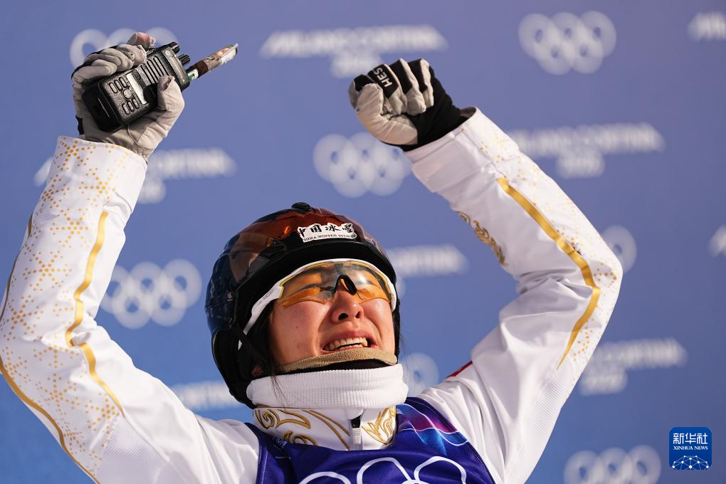 2月18日,中国选手徐梦桃夺冠后庆祝。