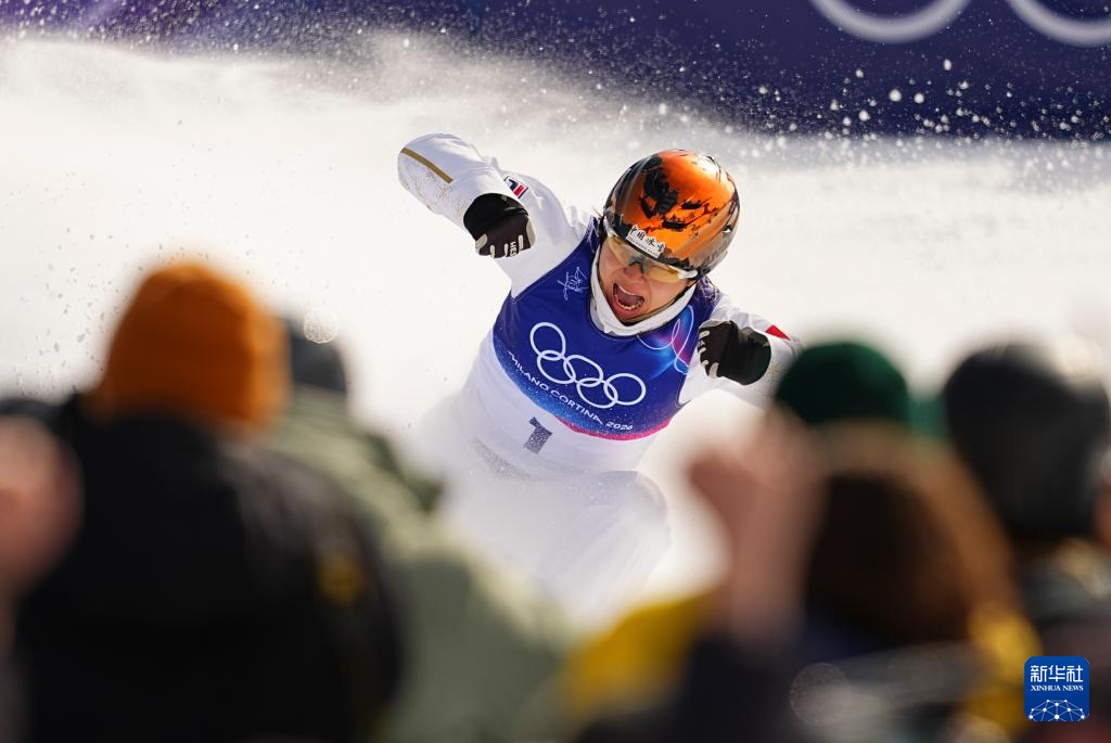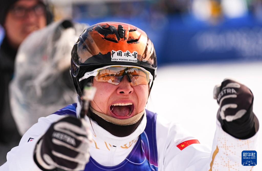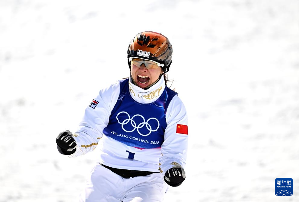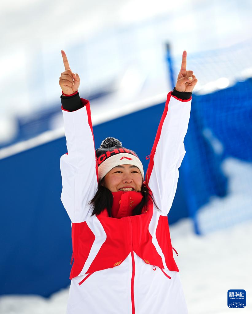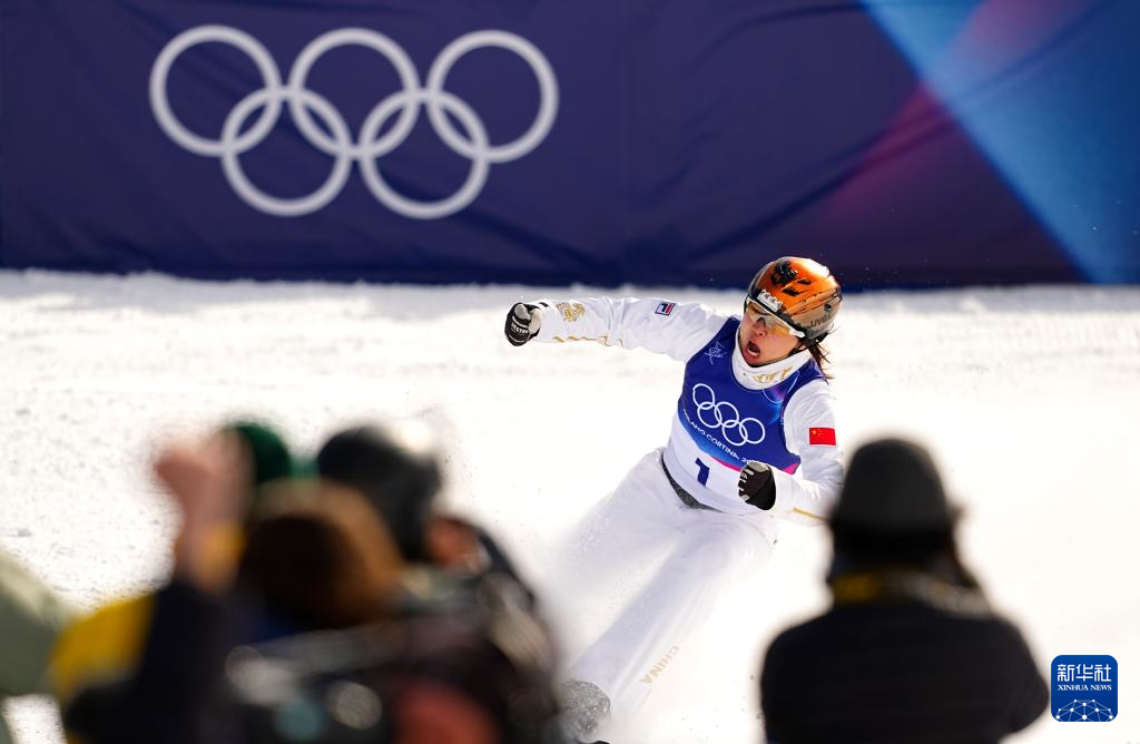 2月18日,中国选手徐梦桃在决赛中庆祝。