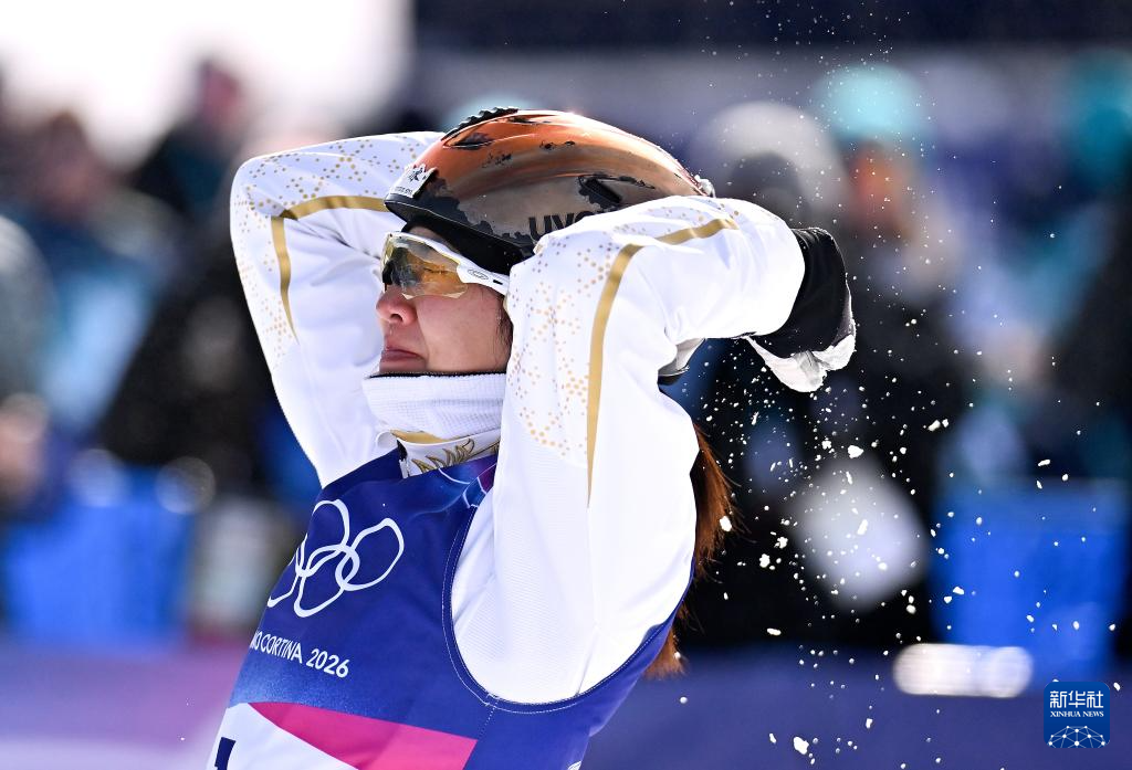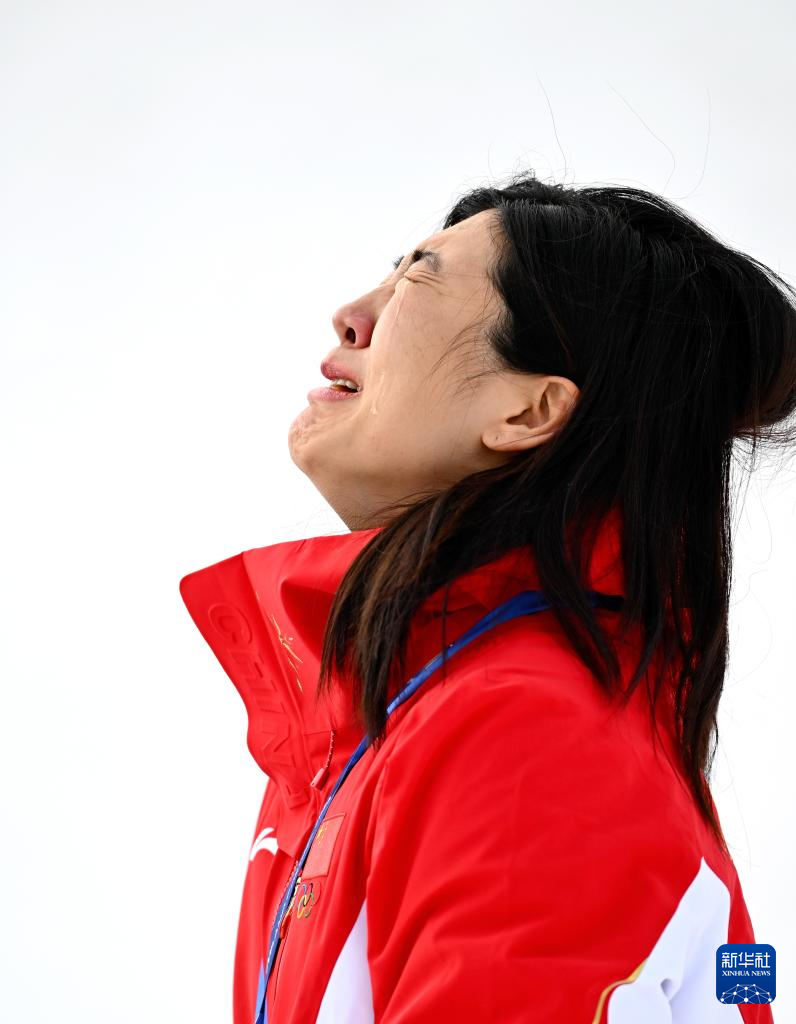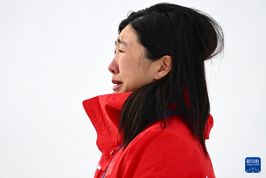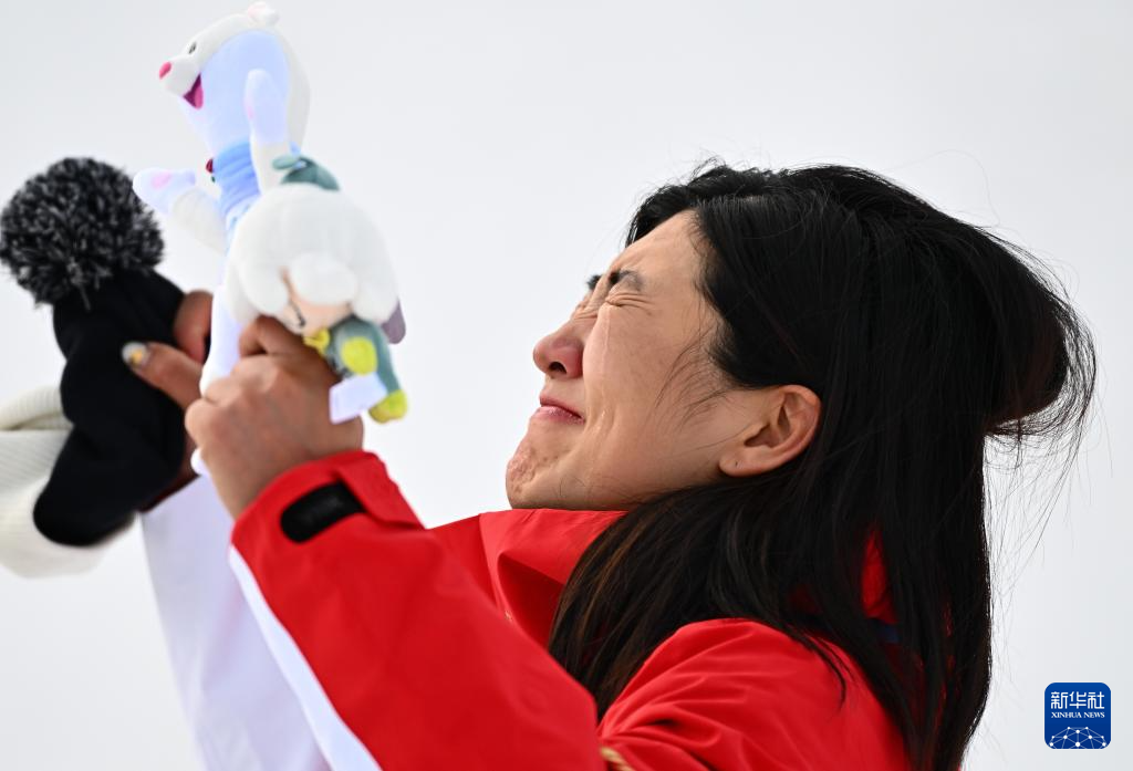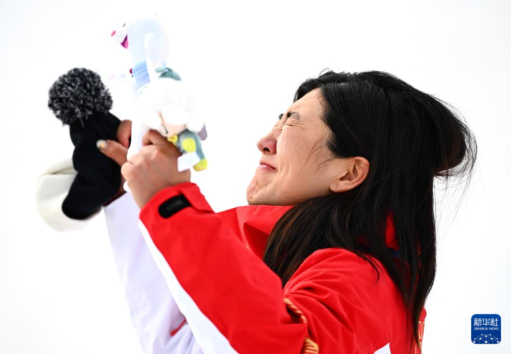 2月18日,中国选手徐梦桃在颁奖仪式上激动落泪。