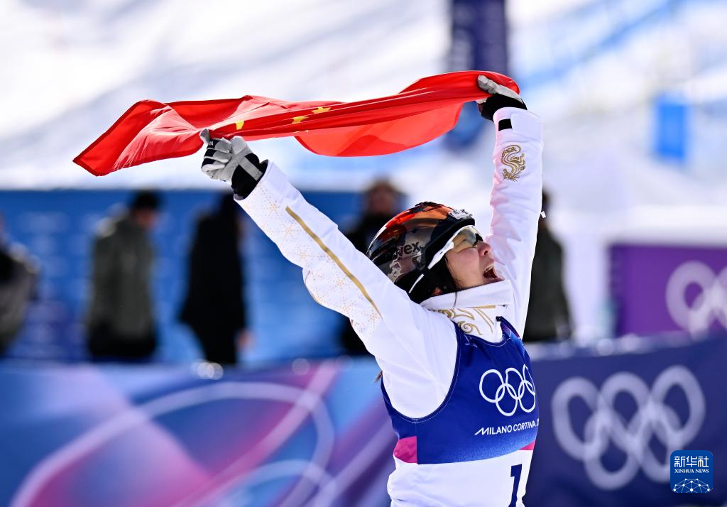 当地时间2月18日,在意大利利维尼奥举行的米兰-科尔蒂纳冬奥会自由式滑雪女子空中技巧决赛中,中国选手徐梦桃获得冠军,队友邵琪和孔凡钰分获三、四名。