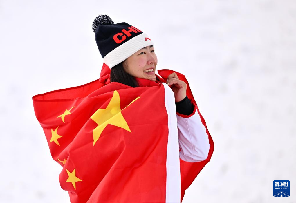 2月18日,中国选手徐梦桃庆祝夺冠。