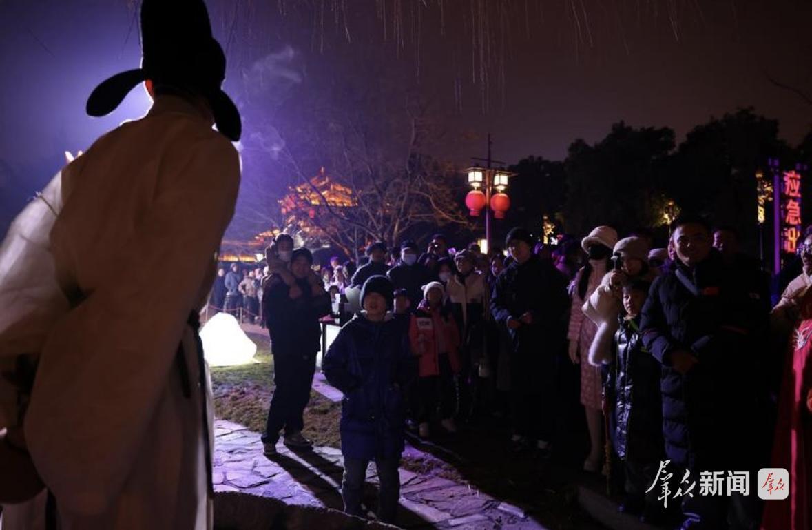 2月13日,大唐不夜城街区人潮涌动。记者看到,身着唐装的演员与游客高声对诗:“春风得意马蹄疾——”“一日看尽长安花。”诗句在街巷间回荡,唐诗不再停留在书页,而成为春节文旅的鲜活场景。