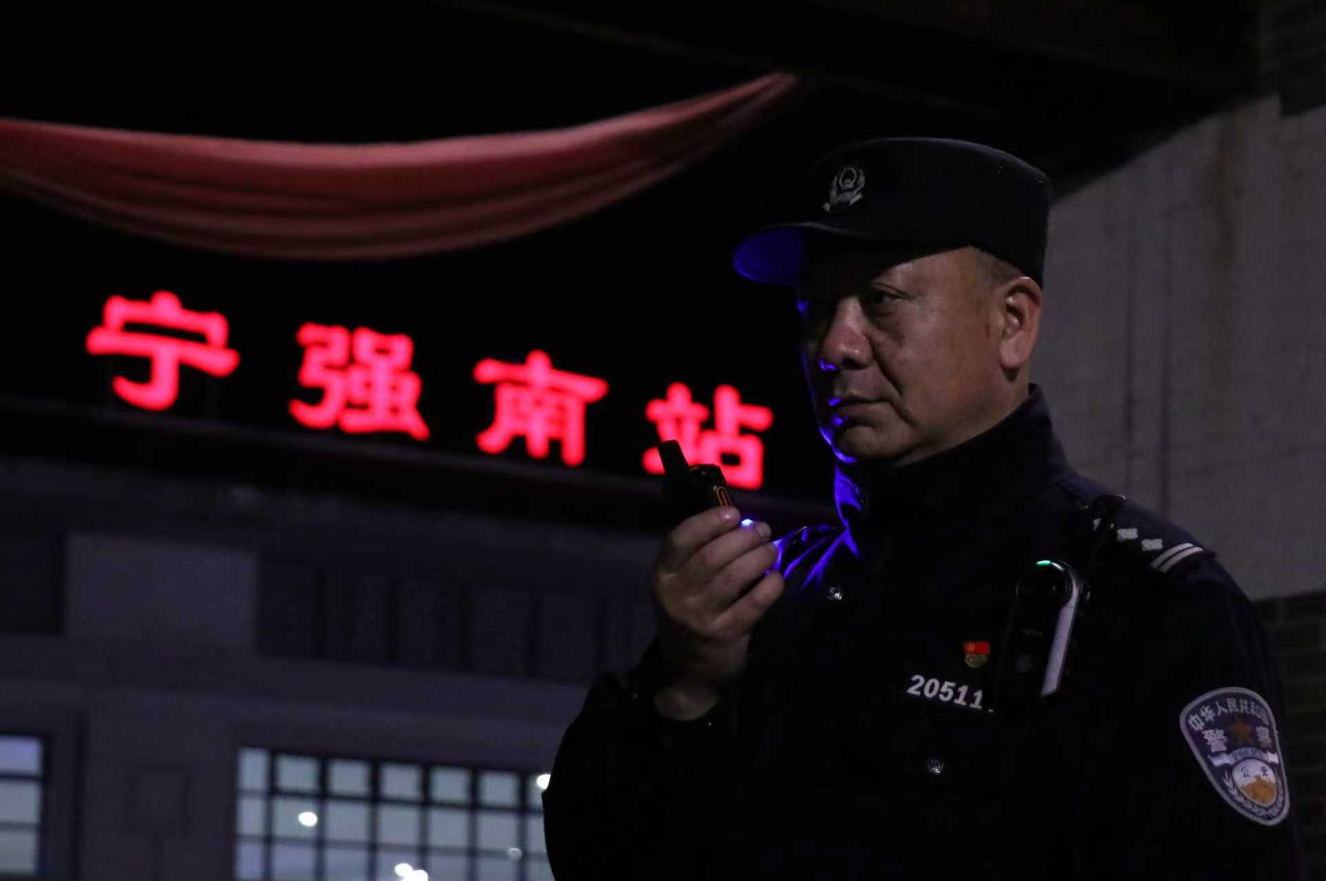 今年春运,宁强南站增开了多趟夜间动车,站勤工作时间也随之调整为每日清晨6时至深夜24时。尽管工作时间更长、强度更大,老裴的认真劲儿却丝毫未减。清晨6时,天刚破晓,初春的寒风裹着凉意笼罩宁强南站,裴保军已穿戴整齐,准时出现在安检口。面对川流不息的旅客,他眼中虽有倦色,目光却依旧专注锐利,一丝不苟地维持秩序、疏导客流、排查隐患、处理求助。深夜23时50分,当最后一班动车缓缓驶离,喧嚣了一天的车站渐渐归于宁静,但老裴的工作仍未结束。他带领辅警对站台、候车室、出站口等重点区域进行全覆盖巡查,确认无旅客滞留、无安全隐患后,才结束一天的值守。
