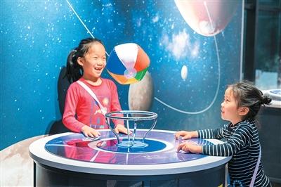 图为2月21日,广西梧州科技馆,小朋友在体验科普装置。