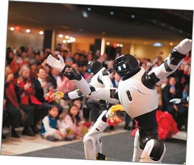 近日,“骏驰八秩,春煦五洲”主题春节联欢晚会在美国纽约联合国总部举行。图为智能机器人在晚会上为中外嘉宾表演舞蹈。