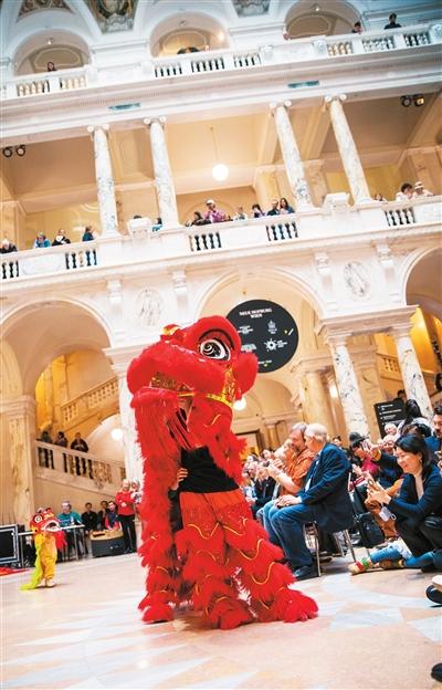 春节期间,位于奥地利维也纳霍夫堡皇宫的世界博物馆举办春节庆祝活动。图为活动现场,当地华人社区民众与奥地利各界人士一起欣赏表演。