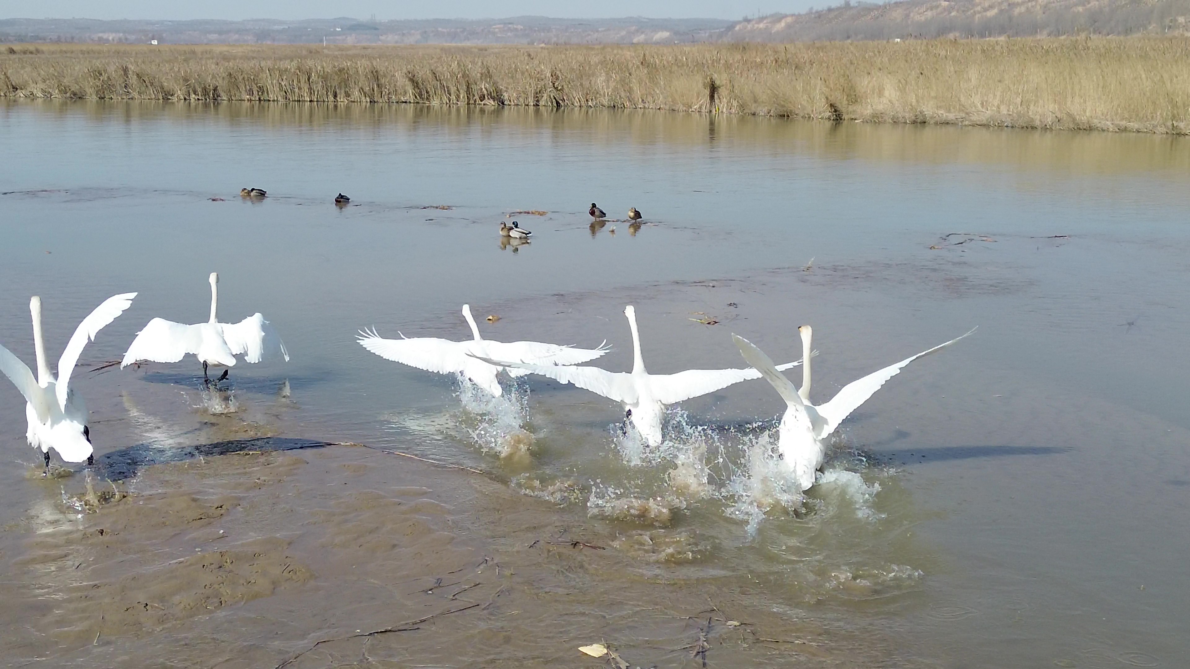 本报讯(通讯员 杜芳俊 李和富)冰消雪融,春回大地。近日,在陕西榆林市横山区无定河湿地,白天鹅、赤麻鸭、野鸭等候鸟如约而至,或在水面悠然游弋、展翅嬉戏,或在滩涂休憩觅食,与碧水清波相映成趣,勾勒出人与自然和谐共生的春日画卷。画面中,橙红色的赤麻鸭在浅滩踱步,野鸭在水中划出阵阵涟漪,洁白的白天鹅点缀其间,与澄澈的河水、连绵的黄土坡构成了一幅灵动的生态图景。