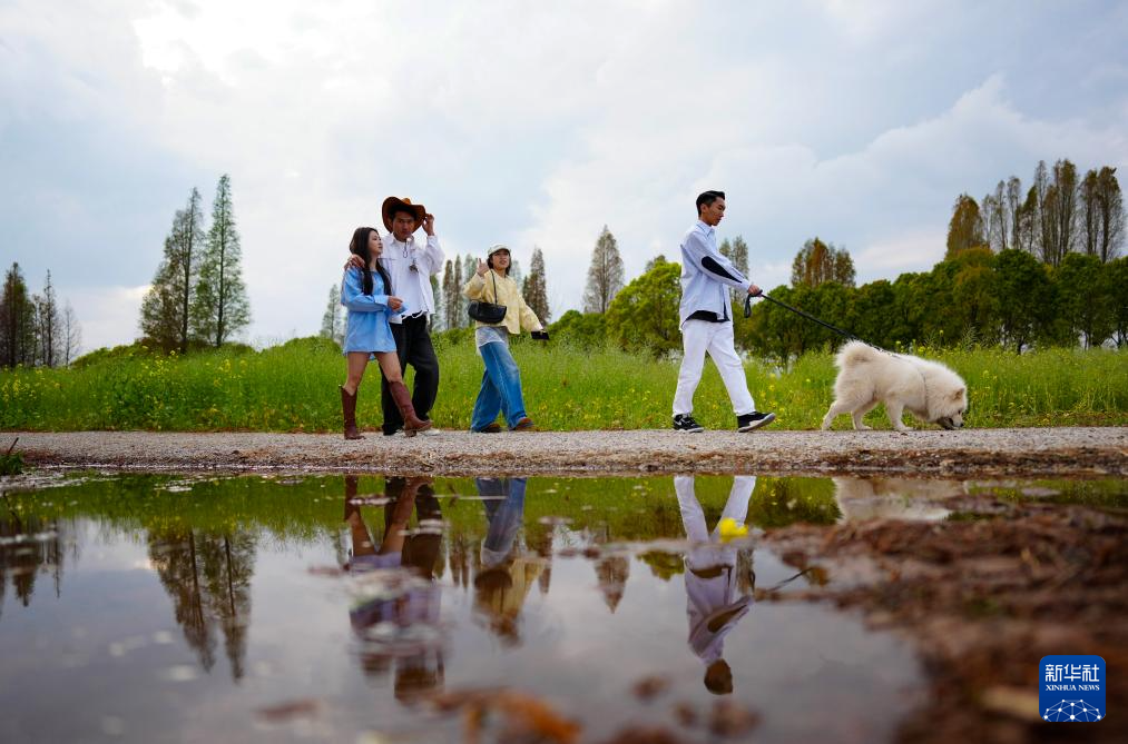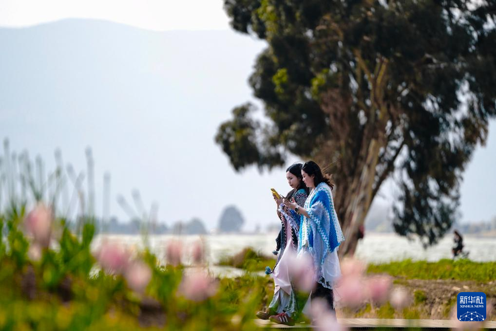 2月26日,游客在滇池边漫步。