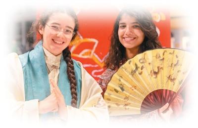 法国巴黎,大学生们试穿中国汉服。