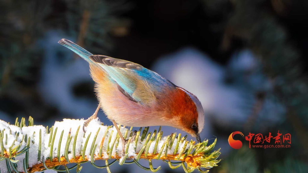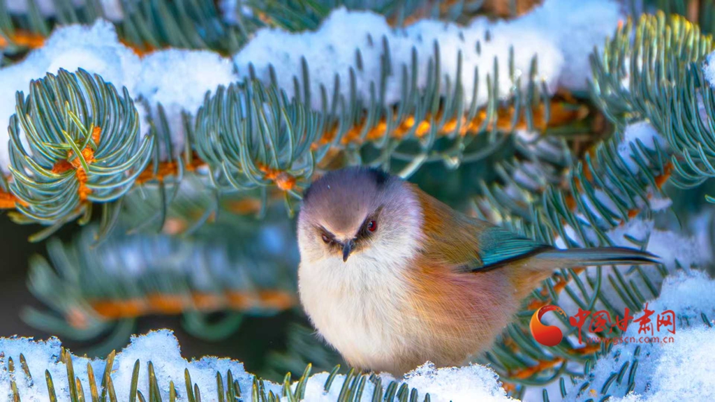 中国甘肃网2月26日讯(西北角·中国甘肃网记者 张慧雅 通讯员 焦方宁 王东琳 张宏)春日里,朔风卷寒,琼英漫舞。冷空气过境后,祁连山区被厚厚的白雪层层叠叠地包裹,千峰万壑在阳光下闪耀着清冷的银辉,仿佛天地间所有的色彩都被收敛,只留下一片浩渺苍茫的纯白世界。暖阳下的祁连山林静极了,静得能听见雪粒从松针上轻轻滑落的细碎声响。在清寂苍莽的林海间,总有一抹灵动色彩晕染在苍山翠柏之间,为寒冷的山野添得几分鲜活生气。这抹亮色,定格了凤头雀莺雪中觅食的珍贵瞬间。这些帧帧如画的影像,既镌刻下高山珍禽于自然环境中求生的智慧,也绘就出祁连山生态系统独有的生命力与坚韧底色。