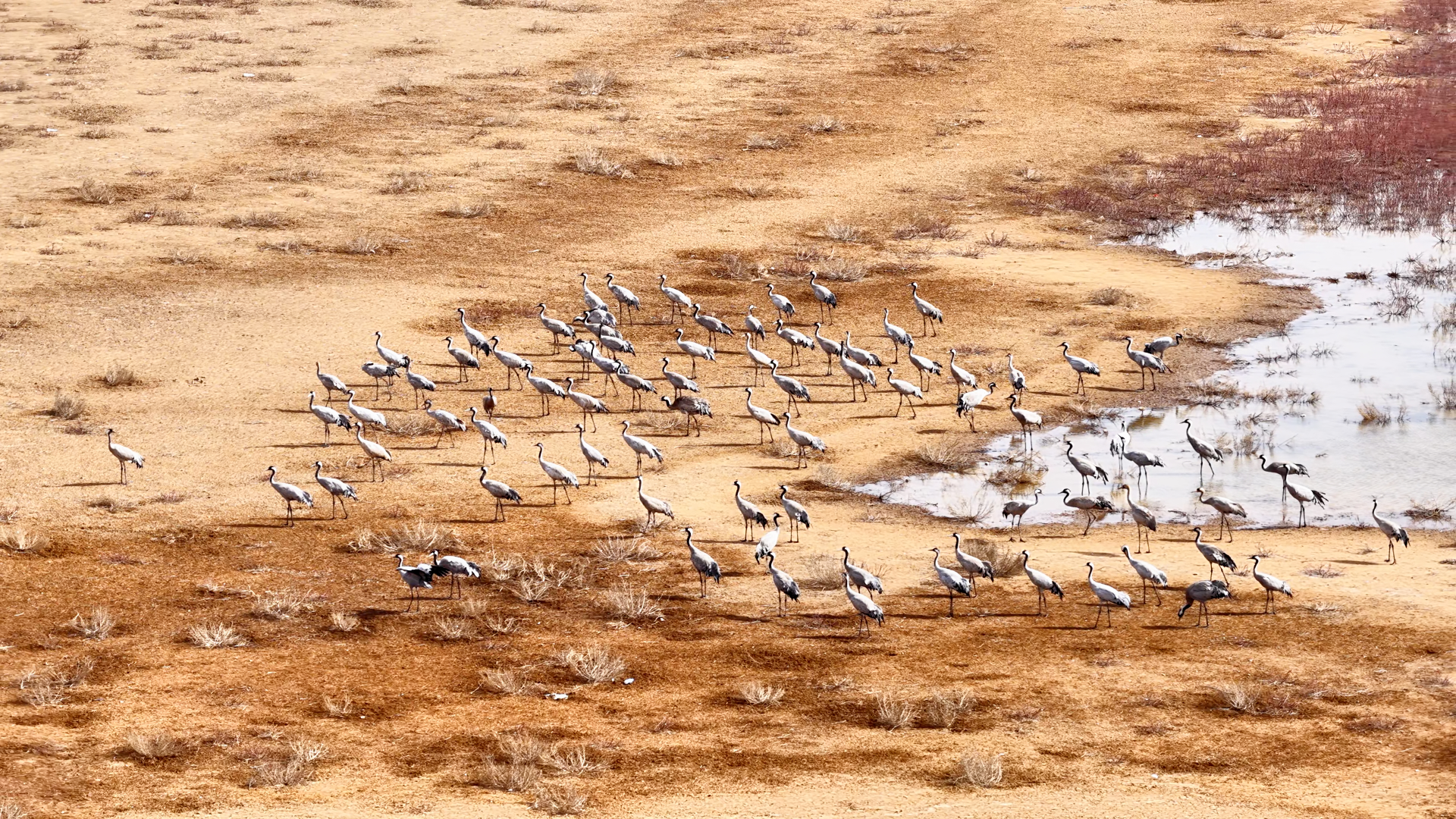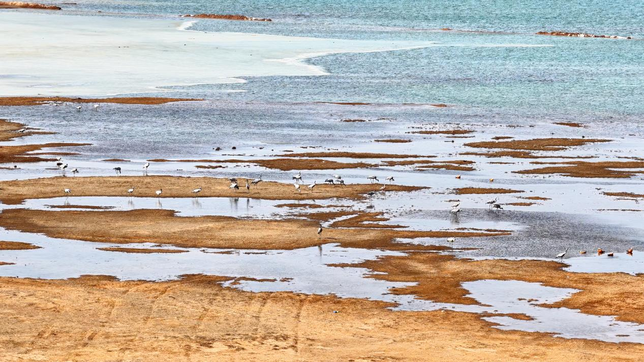 据定边县林草资源保护工作站工作人员介绍,今年抵达定边的灰鹤种群数量稳定、活动范围进一步扩大,周边同步观测到赤麻鸭、秋沙鸭等近200种水鸟栖息觅食,其中包含国家一级保护动物遗鸥等珍稀物种。作为对栖息环境、水质和食物资源要求严苛的迁徙鸟类,灰鹤连年如约而至,直观印证了定边生态环境持续改善。