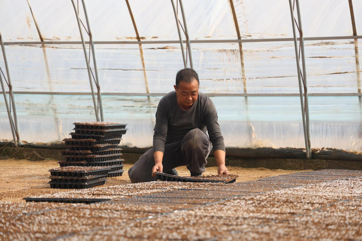 2月25日,走进白泥井镇衣食梁村的一处育苗基地大棚,机器的轰鸣声奏响了春的序曲。一条全自动播种流水线正在匀速运转,工人们只需将空的穴盘放上传送带,机器便自动完成装基质土、压穴、精量播种、覆土等一系列工序。