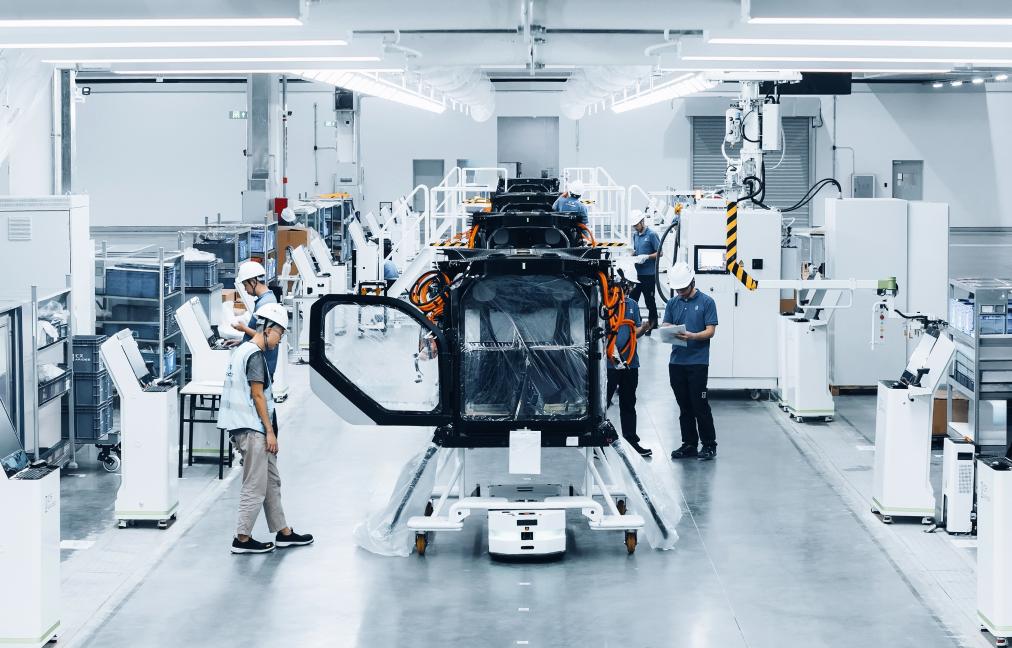 图为汇天飞行汽车量产工厂总装车间。(采访对象供图)
