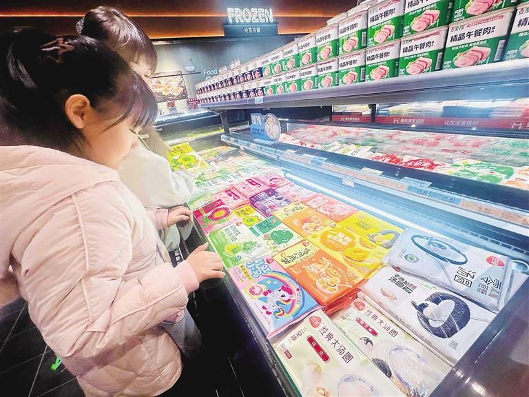 市民赵女士精心挑选果味元宵:“上次购买的这款爆心啵啵元宵口感清爽细腻,老人孩子都爱吃,我们还跟着教程做了不同吃法,这不马上快元宵节又逢开学,特意多囤一些。”市民李女士带着孩子选购了一款“马到成功”奥巧味元宵。“往年多吃黑芝麻、水果味的元宵,今年想尝点新意,这款价格实惠,孩子也喜欢。”李女士说。