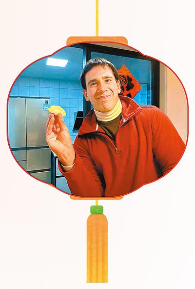 来华工作的阿根廷籍人士宝弟在上海同事家中过春节。