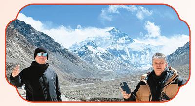 法国游客古特和格兰杰在西藏自治区的珠峰大本营。
