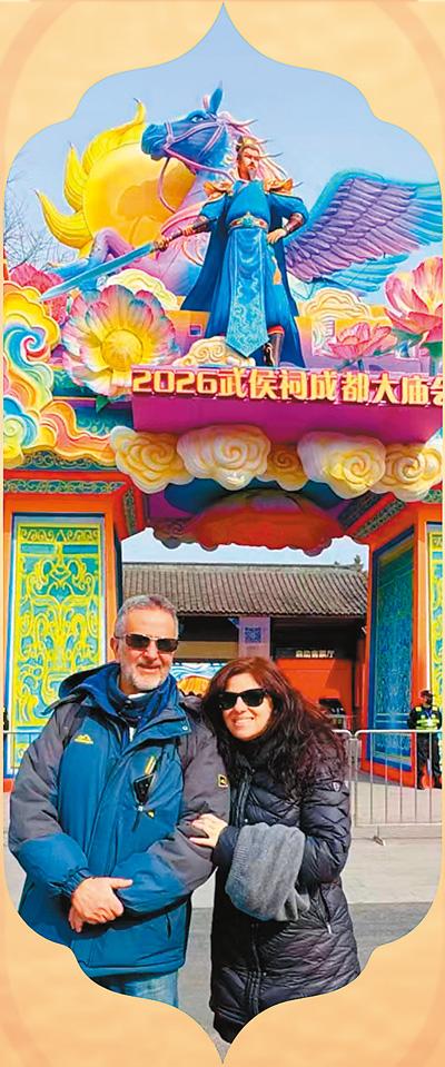意大利游客马里齐奥和劳拉在四川成都武侯祠庙会。