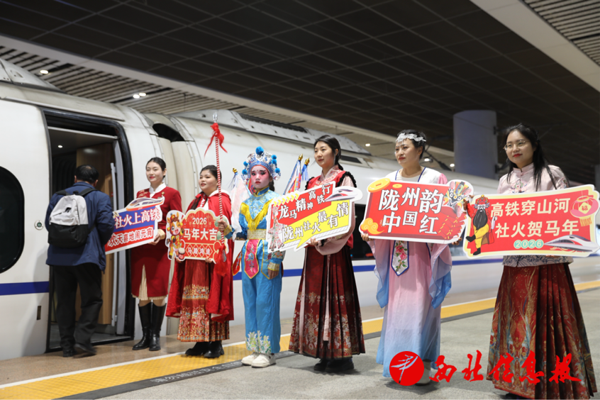 2025年12月26日,西延高铁正式开通,陕北革命老区迈入高铁时代,也为陇州非遗传播带来新契机。西安客运段顺势而为,将坚守八年的慢火车非遗盛宴搬上高铁,让黄土高原的特色民俗搭乘“中国速度”,走向更广阔的舞台。