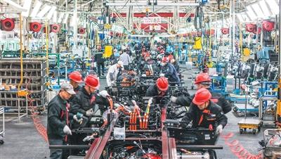 在位于安徽省马鞍山经开区的汉马科技集团股份有限公司的工厂中,工人在赶制新能源重卡订单。
