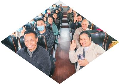 广西壮族自治区柳州市融水苗族自治县开展返岗复工专车输送活动,当地务工人员乘坐专车赴广东深圳、珠海等地返岗。