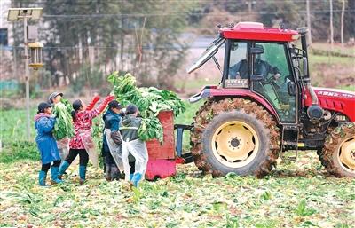 贵州省黔东南苗族侗族自治州岑巩县羊桥土家族乡祝坝村,村民在装运宽帮青菜。