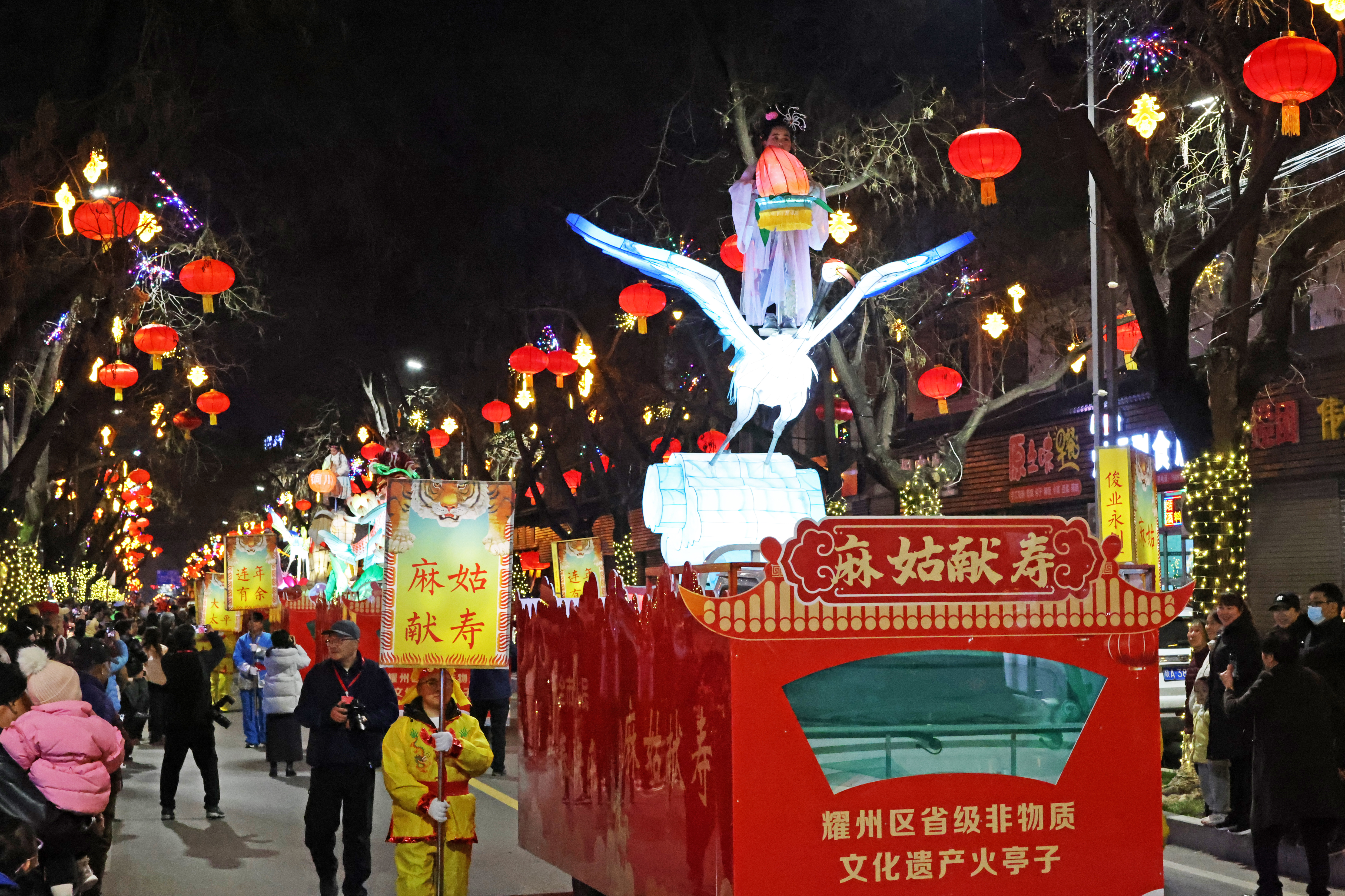 十桌火亭子,十段锦绣华章。被列入陕西省非物质文化遗产名录的耀州火亭子肇始于清末民初,每逢元宵佳节,万人空巷追随巡游,百余年的历史传承让其成为陕西民间社火的一朵奇葩,其火光流转间蕴含的文化价值和精神内涵更是映照着秦川大地农耕文明的集体记忆。如今,传统非遗火亭子融合现代科技光影在新时代重焕生机,以匠心巧思熔铸民俗精粹,用鲜活造型诉说时代新篇,既铺展着吉祥如意、幸福祥和的新春盛景,更镌刻出耀州穿越千年、厚重独特的历史文脉与时代风华。