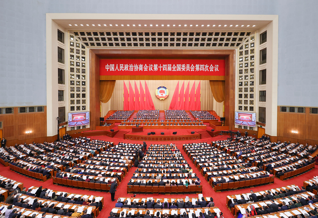 3月4日,全国政协十四届四次会议在北京人民大会堂举行开幕会。这是记者在会场拍摄。