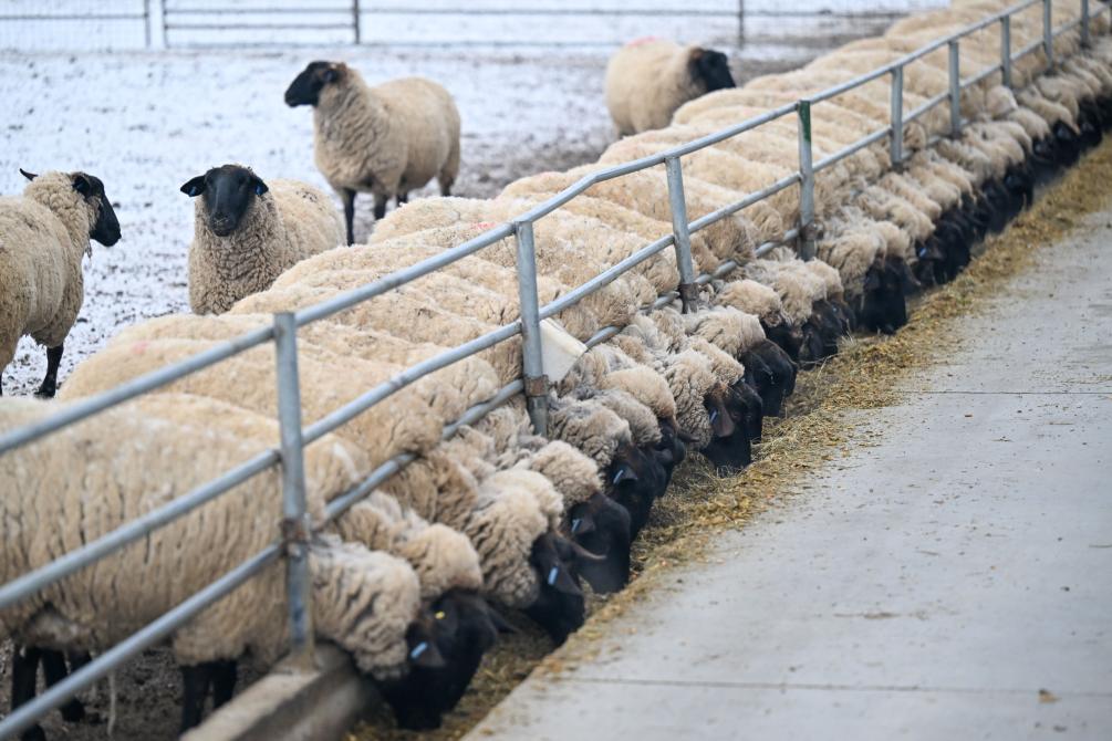 这是在位于新疆昌吉回族自治州的日发新西域玛纳斯牧业有限公司拍摄的萨福克羊(3月3日摄)。新华社记者 丁磊 摄