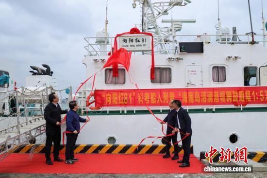 3月6日,“向阳红81”科考船入列仪式暨“海南岛清澜港幅铜鼓咀幅1:5万陆海统筹综合地质调查”项目启动仪式在海口秀英港海监码头举行。此次入列的“向阳红81”调查船总长39.0米,型宽8.2米,总吨位328吨,配备先进的A型门架及起重设备,可作为多用途测量无人艇和ROV取样机器人的母船使用,后甲板作业面积达110平方米,搭载多波束测深仪、浅地层剖面仪、磁力仪、侧扫声呐等一系列先进设备,具备在中国近海开展地球物理、海洋测绘、地质取样等多学科综合调查能力。图为“向阳红81”科考船停靠在海口秀英港海监码头。