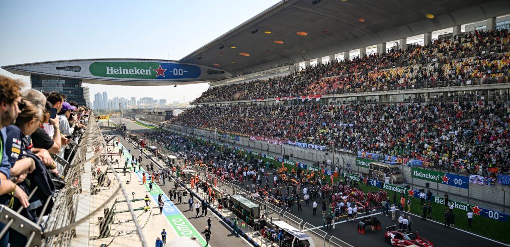 2025年3月22日,世界一级方程式赛车锦标赛(F1)中国大奖赛冲刺赛在上海国际赛车场举行。图为参赛选手在发车前。新华社记者 夏一方 摄