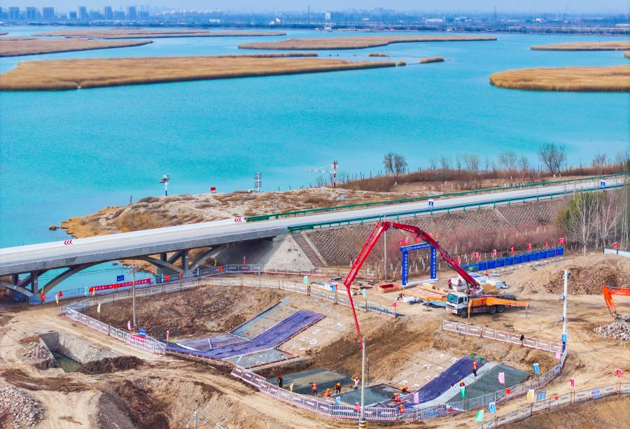 3月8日,银川市金凤区阅海九号湖水生态修复工程建设加速推进。该工程预计8月竣工。建成后,阅海九号湖将成为集休闲健身、自然观光、生态科普于一体的城市生态新空间。记者 马楠 摄