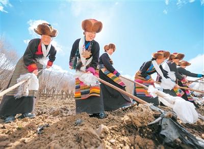 每台拖拉机后边,紧随一名年轻姑娘。她们每走一步,就从腰间的筐里抓出一把种子,熟练地撒进田垄。74岁的村民赤列曲珍看着这些姑娘,不禁感慨,“年轻那会儿,我也这么风光过。”老人笑声爽朗地说,“虽然那时候撒的是自家低产青稞种子,可盼着丰收的喜悦,跟她们一模一样。”