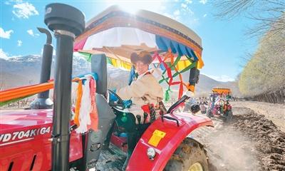 28岁的村民尼玛扎西驾驶着一辆蓝色“502型拖拉机”,拖着翻转犁开进农田,划开了沉睡一冬的沃土。这是他的第三代“铁牛”,是去年政府补贴8000多元买的。“家里14亩地,以前平整、播种,要花半个月时间,现在半天就完成了。”尼玛扎西说。