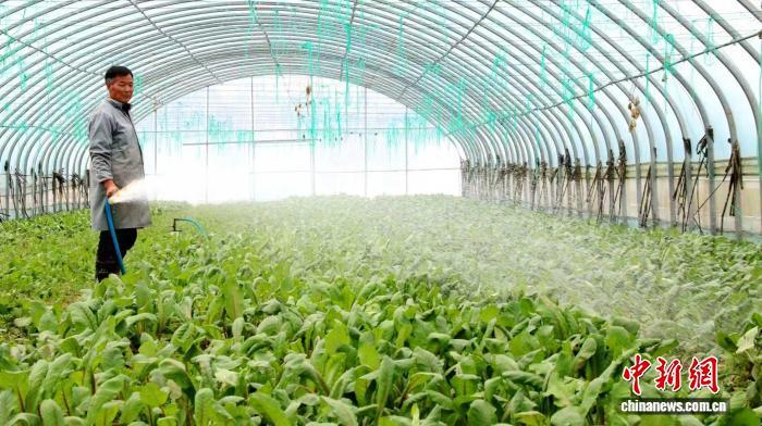 3月中旬,甘肃陇南市成县农户正在给水萝卜浇水。宋海涛 摄